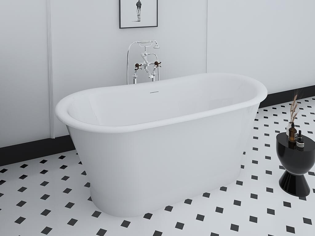 Bañera exenta ovalada - estilo retro vintage - 180 L - 150 x 74 x 63 cm - Blanco - Acrílico acabado lacado - Con desagüe y trop plein de 6 cm - PELMATO